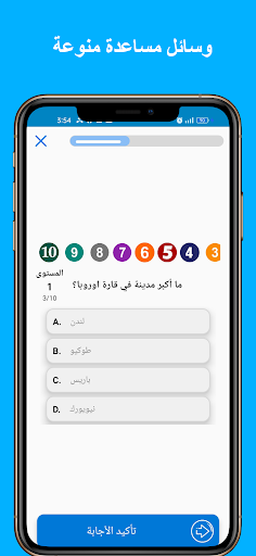 A question and answer application - a game of questions that contains many diverse fields, and each knowledge field contains several levels, including easy questions and answers, others difficult questions and answers, and general information, in addition to that each level contains 10 questions. For each question there are four choices, only one of which is correct. And to develop your general culture, he corrects the answer for you before passing on to the next question.