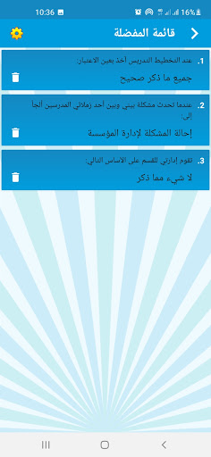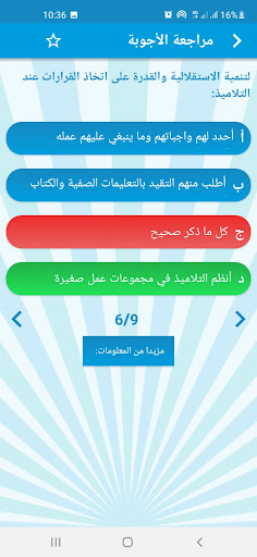 يضم التطبيق 5 مستويات: مبتدئ، أساسي، متوسط، متقدم ومحترف التطبيق يضم أكثر من 400 سؤال في مواضيع تربوية متنوعة: - علوم التربية وعلم النفس التربوي - المقاربات والبيداغوجيات - مصطلحات ومفردات - مستجدات نظام التربية والتكوين - وثائق التخصص -الحياة المدرسية - مهام ومسؤوليات المدرس - التخطيط التربوي - التدبير التربوي - التقويم التربوي...