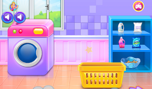 It's time to show affection and love to your mom by helping her do the laundry and clean the clothes at home. Watch carefully your busy daily routine to learn how to wash and clean soiled clothes. Play this laundry game now and enjoy virtual simulation and room service in this cleaning game for girls.