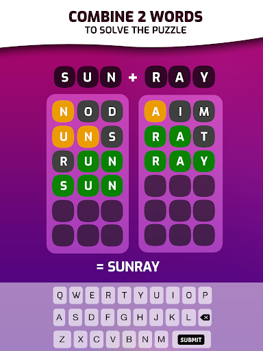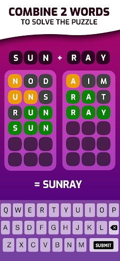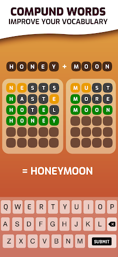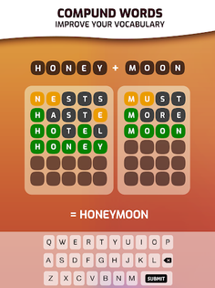 2 Words is a word puzzle game very similar to Wordle, the game that took the internet by storm. You have 6 tries to find a word, but don't worry, we will tell you which letters you guessed, which not and which ones you placed right. 2 Words is a lot more difficult than Wordle. It forces you to think in a new way - you must find two words and by uniting them you will find the answer (for instance: HONEY-MOON, SUN-RAY, CARD-BOARD etc).