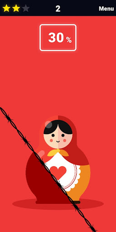Try to cut 20% off of objects using finger swipes in order to advance in the game.