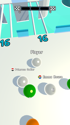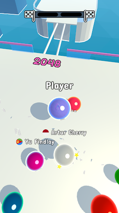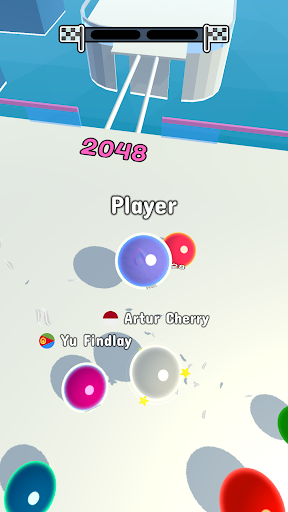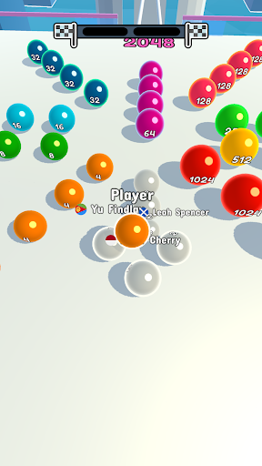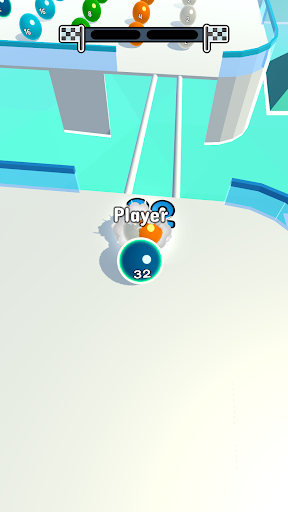Merge your ball with balls of the same color and number to get bigger and pass the rails.