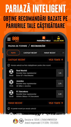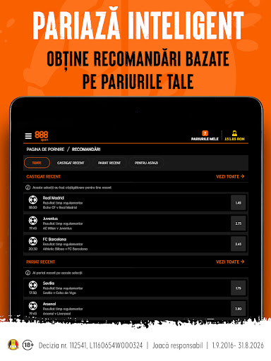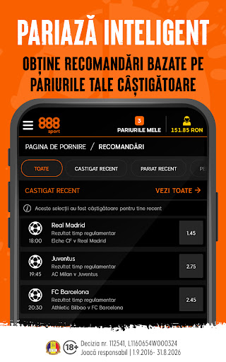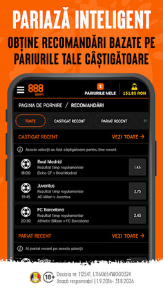 • Recomandări – Îți va fi ușor să urmărești pariurile plasate și câștigurile recente accesând secțiunea special dedicată din aplicație.