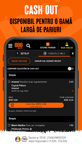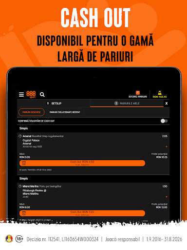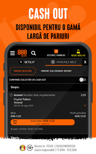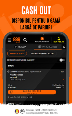 • Cash Out – Uneori poate fi greu să știi în ce direcție va merge pariul tău și s-ar putea să fii mulțumit și cu un profit mai mic. Funcția Cash Out de la 888sport îți permite să închizi pariul înainte ca evenimentul să se finalizeze.