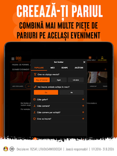 • Creează-ți Pariul – Combină piețele din același meci pentru a crea propriile tale pariuri multiple.