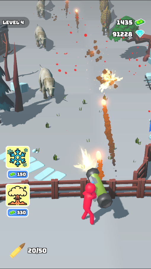 Grab your weapon and shoot. Huge selection of weapons, from shotgun to rocket launcher. Dinosaur hunting season is open!