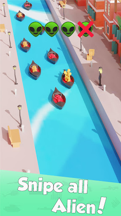 Aliens may take the place of humans, animals, and even objects. When you utilized the UFO scanner, keep in mind where you observed the extraterrestrial. After that, shoot the aliens with the blaster. As the number of aliens grows and they begin to move, it gets harder. Don't harm living creatures or humans. You won't succeed in this situation. The gameplay in this extraterrestrial game is simple. The aliens lurking among us are the imposters. They appear to be typical citizens. In the game Imposter, your objective is to eliminate every alien. all of the suburbs' levels must be completed. Kill more of the outlaws living among us by unlocking a new blaster.
