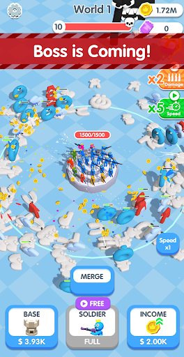 Now, move your fingers and call out rainbow friends! They will raise their guns and fight for you! Upgrade your base to accommodate more soldiers. By merging, you will get more powerful rainbow friends!