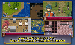 Prepare to embark on an unforgettable journey in one of Japan's most popular RPG titles, available now on Android! After almost a century of peace following the destructive Energi War, the Schwarzschild Empire has resurfaced, with ambition of conquering and occupying nations one by one. In the small frontier town of Heiland, two heroes named Ash and Karim come to rescue a young woman and her escort being chased by foreign soldiers. Who is this mysterious woman and what danger lies ahead for Ash and his companions? Find out in this epic tale.