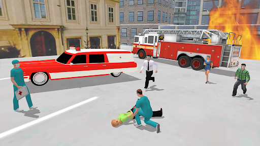 Sound real ambulance sirens and drive fast through city streets past busy rush hour traffic to rescue injured people. Jump out of your ambulance to perform first aid like applying bandages, using defibrillators, giving medicine, all to help stabilise the patient. Help the patient safely onto the stretcher and into the ambulance, it's now time to get them back to the city hospital on time and safely.