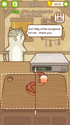 There are many kinds of props in the game. When customers come to buy, they need to cut to the specified amount to complete the goal of passing the level. What you have to do in this game is to meet the needs of customers, and the types and weights that each customer wants are different. Be a conscientious businessman, don't cut some leftovers for customers!
