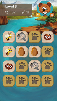 This fun memory game will give you a lot of pleasure and benefits at the same time, it will sharpen your brain and improve visual abilities while hanging out with your favorite animal characters. By playing it, this memory building game tells you a story along the way. Your task is to collect paws by matching the cards that are upside down and unlock new animal characters.
