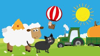 ★ The tractor rides in the background. Colorful choo-choo train carries fruits and vegetables. Planes fly across the sky.