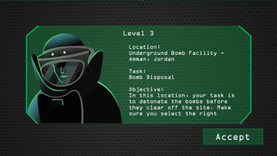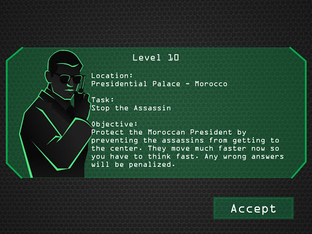 Are you ready to embark on a thrilling, top-secret mission? Arabic Spy will take you on an exciting adventure that spans across various cities throughout the Middle East. Your mission is to rescue the Syrian president and save the world. After accepting the mission, you will be presented with a map featuring several training facilities in the Middle East where you will need to hone your spy skills and learn Arabic. Successfully complete each level by achieving specific objectives such as detonating bombs, decoding encrypted messages, shooting targets and thwarting assassins.