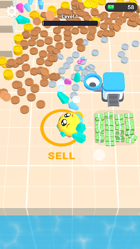 Stick different items from tiny to massive and sell them out to turn them into money.