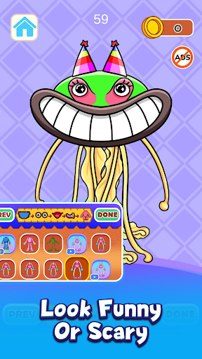 In this monster creator game, there's no such thing as too crazy—mix and match anything you want to create hilarious or horrifying creatures. From vibrant eyeshadow colors and wild hairstyles to creepy masks and skin textures, the options are endless!
