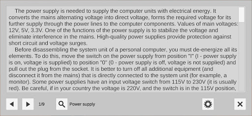 The application provides information about the main characteristics of the components of the computer system unit, tips for installing and selecting individual PC parts.