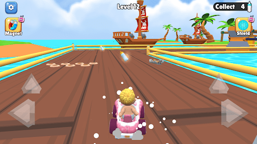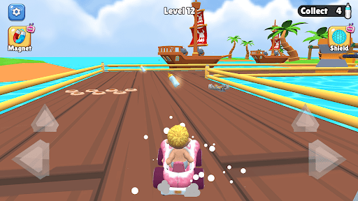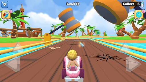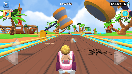 Guide Babby through racing tracks filled with obstacles and valuable things to collect.