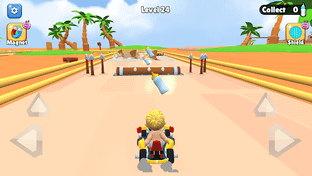 There are many hindrances to overcome in Babby Kart: Car Racing: dodge the giant Wood Mullets, jump over wheel-crashing Trap Teeth, evade the Tall Collumns and collect Milk Bottle on the way to unlock the kart you want.