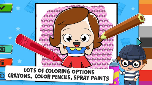 My Town Baby coloring games for kids will improve toddlers and babies motor skills, creativity and imagination! Let kids enjoy crayon games and create simple art! Our Baby Coloring games have many coloring pages that toddlers can glitter all day! Kids painting can be so fun with us!