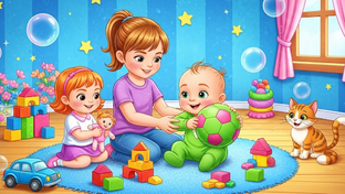 Babys toy truck or the arm of his stuffed animal, and encourage your little one to give it a tug. Fill a small plastic tub with water and various squishy toys, plastic cups, kitchen ladles, and other items. Let kids enjoy alphabets, puzzles, jigsaw, squishy, shapes names, slime and pop it. Babies felt hungry so often whole day , Prepare meal for the kids. You can make feeder and some fruits mixing. Manage baby seats and stroller, put baby bibs. Babies can have options and variety for eating like, some chicken pieces , pizza, sandwiches, mash potatoes, apple shakes, banana shakes and ice creams as desert which babies love to have. Bedtime is always necessary for babies as They also influence critical abilities such as language, attention, and impulse control. Sleep builds your baby's brain. Let’s make baby cradle, blanket , pillow , milk bottle, soft music toy, teeth brushing, nigh dress and bed time story.