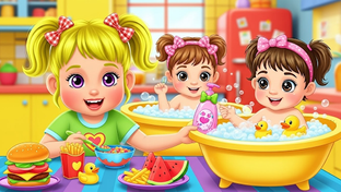 Babysitter Triplets Chic Care game will help in baby nursery caring games and learn a lot of skills of handling a baby in baby care simulation. Its is free toddler games for Preschool children ages 2 ,3, 4,5, 6,7,8 and up to 12 years old. You needs to show their skills whole day and have fun with the baby and perform all the duties like a professional baby sitter on virtual adopted baby child. Chic babies will learn about educational activities as well. So are you ready to have a blast of fun and get appreciation from the mother and father as you will fulfils their duties. At first baby was crying badly where you need to find out the problem, always check the diaper. For changing the diaper you need to have some equipment’s like a diaper, fasteners, a container of warm water and cotton balls, diaper wipes, a changing pad and rash tube. A diaper change is required with every soiled diaper to prevent skin irritation. As your baby grows, his diapering needs evolve with him. You may be starting to get a handle on just how often you should be changing his diaper and when to expect a bowel movement. Its time to give a warm and relaxing bath to baby, Before bathing your newborn, make sure everything you need is within reach. Wash newborns in a shallow bath of warm water. You can give your newborn a bath in a small plastic bath or even in the sink.