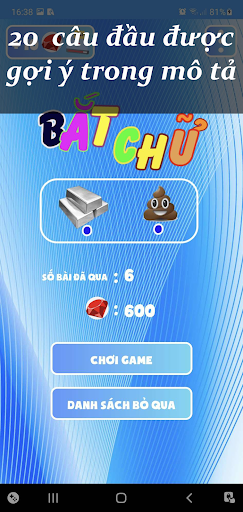 Download the game now to enjoy fun, refreshment, and interesting surprises with this "Bat chu - Duoi Hinh Bat Chu"!