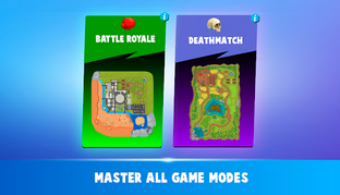 - Play with friends or solo in battle royale and deathmatch games.