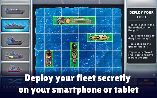 When you are playing locally with a friend, you can both download the application on your smartphones or tablets: they become additional private screens and controllers to secretly deploy your fleet, target your friend’s ships and fire your attacks!