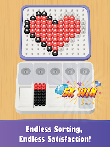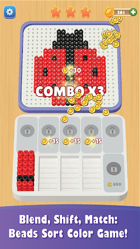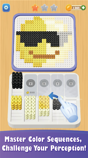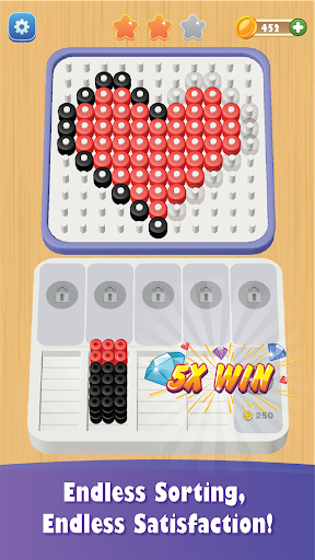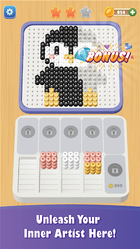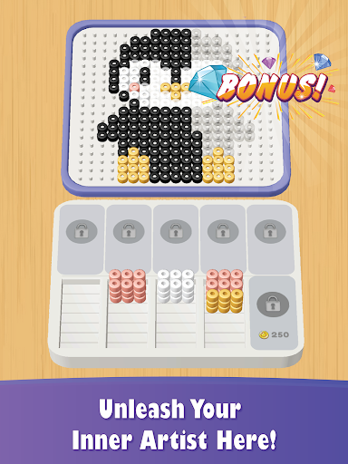 Tap and sort identical bead colors that will be showed on the bottom slot & complete the picture. Solve the puzzles, win each level and unlock new stylish and exiting pictures!
