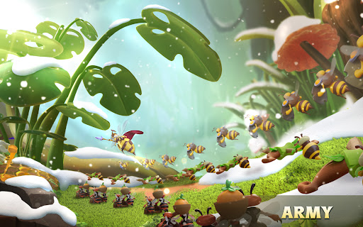 Build, explore, and conquer an unknown island in Beedom with allies. Lead armed bee troops, enjoy rewarding dungeons, and merge to upgrade instantly.