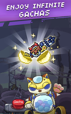It’s so easy to upgrade here – simply by collecting gachas! Push the button to get more and more fancy superior weapons! Getting strong is just easy as pie!