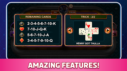 *TRICK HISTORY :- If you want to know which past trick won by which user and which cards were thrown to that trick, for that this feature will help you.