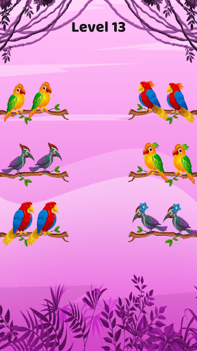 Bird Color Sort is a fun and addictive puzzle game! Try to sort the colored bird on the tree branch until all the birds have the same color and fly away. Water sort puzzle games are no longer unique. With the new style of sorting games with colored birds and birds, singing brings definitely a challenging yet relaxing game to train your brain! ASMR sounds in each category of Birds.