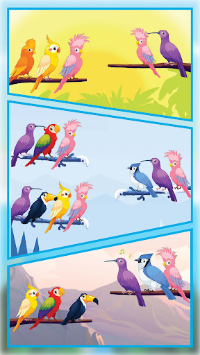 🕊️Tap any bird to move bird into another branch and sort it! The rule is that only birds of the same species and there is enough space in the branches can move each other.