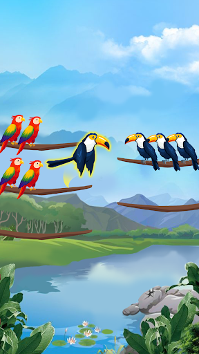 Sort the colorful birds by moving them to the right branches with the least moves; collect coins and unlock new levels.