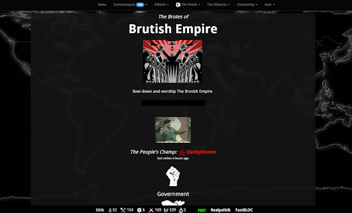 Lead your nation - dominate or collaborate with players worldwide. Capitalism or communism - build wealth and conquer for supremacy in this free geopolitical MMO.