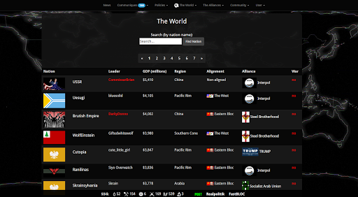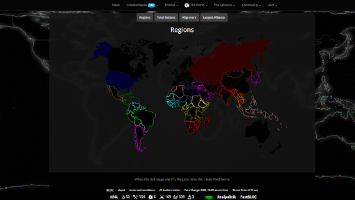 BLOC provides players with a sandbox world where they can interact with hundreds of other nations that are also controlled by players. You can form alliances or conspire against others to advance your nation's interests. Whether you choose to govern your country as a ruthless dictatorship or a benevolent democracy is entirely up to you.