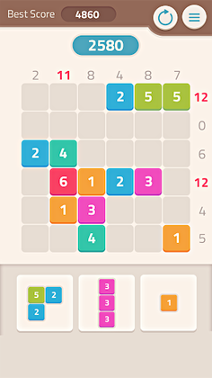 Make Tens - A conventional numerical challenge. Drag and release the numbered blocks onto the panel and merge them to form a total of 10 to eliminate the rows. This mode poses a particularly intricate puzzle to your intellect as the number combinations grow more intricate as the game progresses.