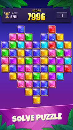 Lay, fill, and eliminate jeweled blocks in horizontal and vertical lines to score high in this gem puzzle game. Easy to play but challenging!