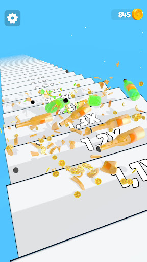 Watch the bottles shatter as you skillfully guide them down the stairs. Break them into countless pieces to earn points and rewards. But that's not all! Merge the shattered bottles to create stronger and more durable ones. The more you merge, the further down you can go, earning more rewards and bonuses along the way!
