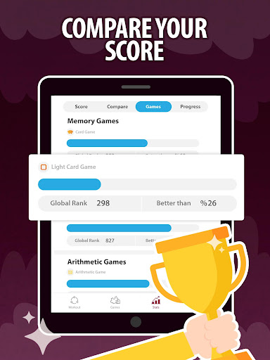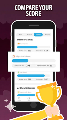 * Compare your scores for each games and categories globally.