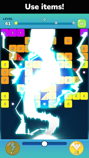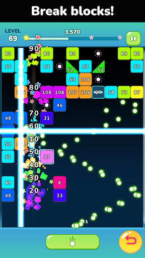 Shoot the balls and watch the chain of hitting and breaking blocks by the balls.