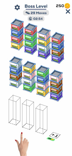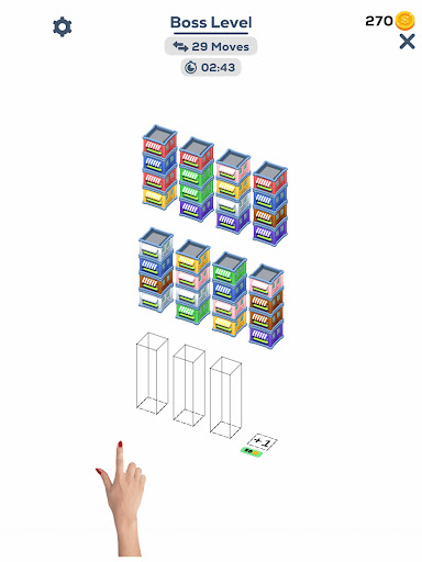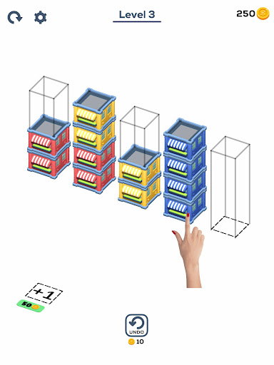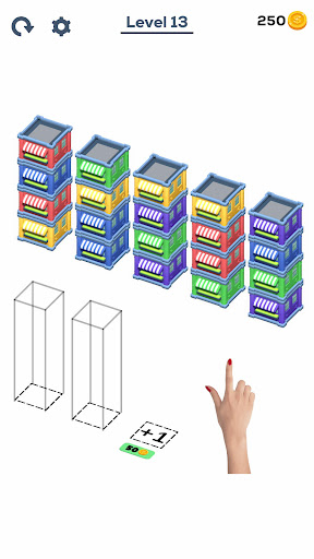 Try to sort the colored stacks on top of each other until all colors in the same vertical. A challenging yet relaxing game to exercise your brain!