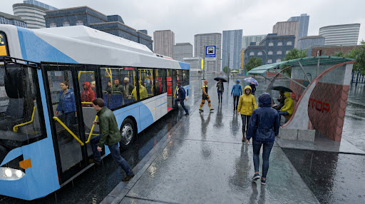 Prepare to be amazed by the intricately detailed city environment in this Bus Driving Game. With its dynamic day-night cycle and realistic weather conditions, the city feels alive and vibrant. Roam freely through the metropolis, from the vibrant downtown to the serene suburbs, in this Bus Driving Simulator. Whether it's sunny, rainy, or foggy, every weather condition influences your bus driving skills, making the experience even more immersive.