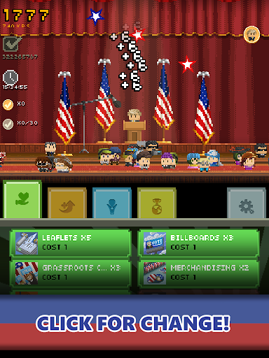 Experience the perfect blend of real political discourse and the excitement of a video game in Campaign Clicker. Keep leveling up your campaign profile, unlocking secret characters, and continue to gather votes.