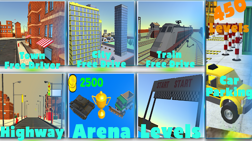 3D cartoon style design with HD graphics, you can choose from dozens of cars with impressive graphics, you can drive a Helicopter, Construction Machine Simulator or even a Tank in addition to new cars.