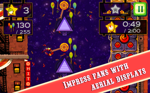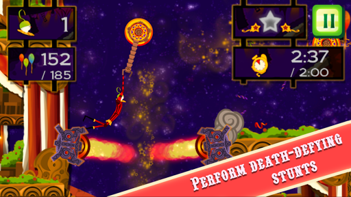 The greatest performance of a lifetime awaits you, as you swing your way through the level for a performance that your audience will never forget. Dodge through hoops of fire, avoid flaming cannons and fly pass electrical blocks as you race your way to the end in a spectacular 5-star show.