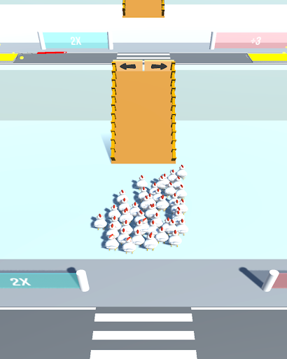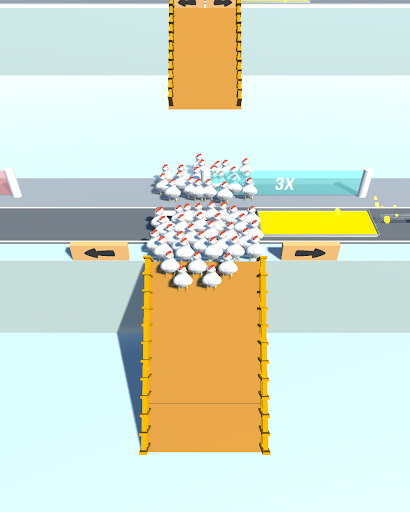 Lead as many chickens as possible to the goal, being careful not to let them fall into the oil.