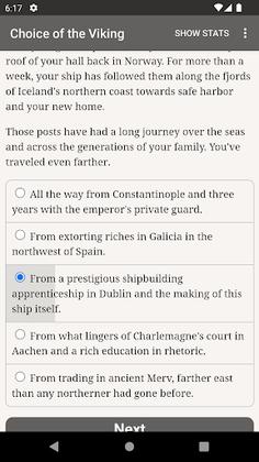 In "Choice of the Viking", a thrilling 310,000-word interactive historical fantasy novel by Declan Taggart, you hold the reins with every choice you make, ultimately shaping the story. There are no graphics or sound effects, but the game is rich in detail, encouraging you to use your boundless imagination.